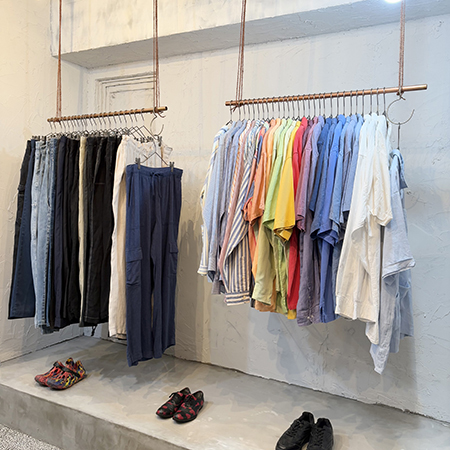 A.M古着屋専用階段を上った2階に佇む大人の古着屋です。モノトーンが基調の落ち着いた空間に、ブラックアイテムをは ...
